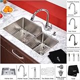 Kraus KHU123-32-KPF2230-KSD30CH 32" Undermount Double Bowl Stainless Steel Sink |